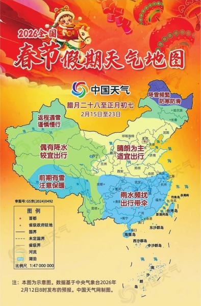 2026年春节将至,史上最长的9天连休假期等你安排。是准备围炉守岁话家常,还是旅行过年看世界?中国天气网推出2026年全国春节假期天气地图,看看你那儿是否天公作美。
