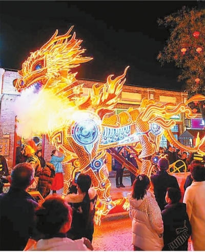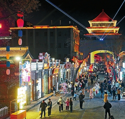2月14日,游客在邢台好南关文化街区游玩。