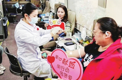 社区工作人员和辖区单位、居民参与无偿献血。