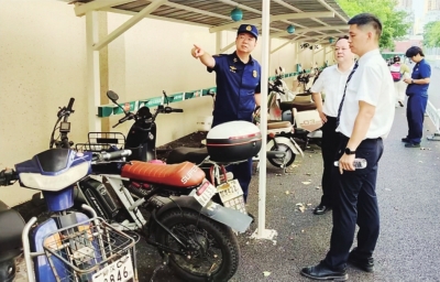 消防队进社区和物业公司一起检查消防安全。
