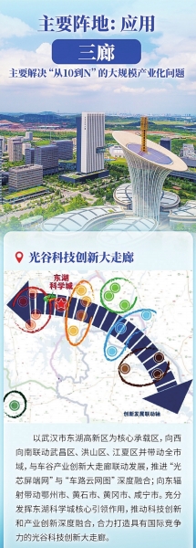 当前,“三廊”建设已初显成效。在光谷科创大走廊,华工科技在超高速光模块、高端光芯片领域实现关键核心技术突破,产品已供应全球AI算力中心;九峰山实验室在氮化镓电源模块技术领域达全球领先水平,助力大型算力中心大幅节能降耗。车谷产业创新大走廊正加速推动新能源与智能网联汽车核心技术迭代升级,向全球竞争力的汽车产业集群迈进。