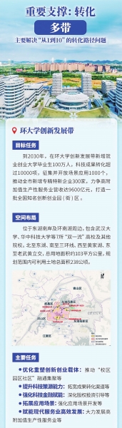 在“多带”建设方面,武汉明确到2030年,力争在环大学创新发展带新增就业创业大学毕业生100万人,转化科技成果超10000项,打造一批全国知名的创新创业园区。