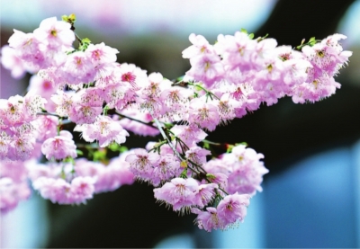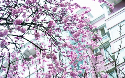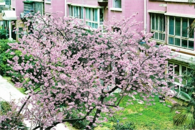 鹦鹉花园小区里的早樱盛开。
