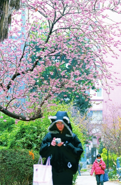 2月25日,汉阳区鹦鹉花园小区里的几株早樱花开正盛,小区居民们不用去公园就可以在家门口赏樱。小区物业负责人介绍,这几株早樱和小区“同岁”,种植至今已经有近30年。每年由区园林部门指导专门对小区的苗木进行养护。由于这几株早樱树花开形态好,也吸引了不少赏花客前来拍照留影。