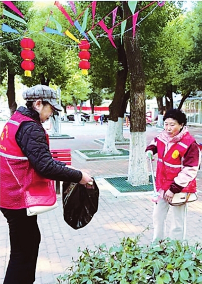 社区志愿者合力美化家园。