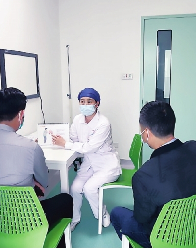 结核预防干预门诊护士为筛查人员讲解结核病知识。