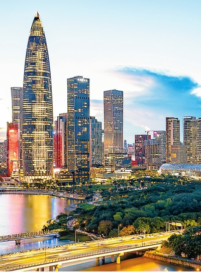 深圳市南山区的深圳湾体育中心以及周边建筑。