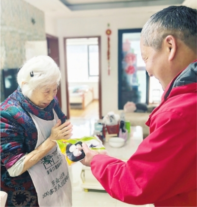 社区党员志愿者为独居老人送汤圆。
