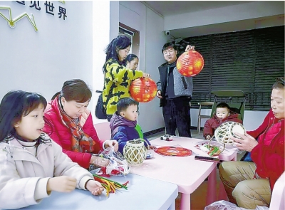 活动现场分为儿童体验区与老年活动区。在儿童活动区,孩子们在社区志愿者的指导下,认真弯折扭扭棒、固定骨架、装饰灯面,稚嫩的小手穿梭在竹丝之间,一步步将零散的材料变成精致的灯笼。老年活动区内,长辈们围坐在一起,默契配合、巧手编织,凭借细致与耐心完成一盏盏古朴雅致的竹编灯笼,大家边做边聊,分享传统手艺的记忆与乐趣,不少老人还将自己的编织小技巧分享给身边的邻里。