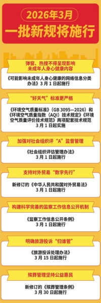 记者近日从生态环境部获悉,生态环境部与国家市场监督管理总局联合发布《环境空气质量标准》(GB3095—2026)和《环境空气质量指数(AQI)技术规定》《环境空气质量评价技术规范》两项配套技术规范,相关标准3月1日起实施。