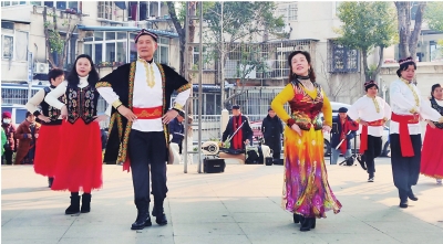 社区居民表演民族舞蹈。
