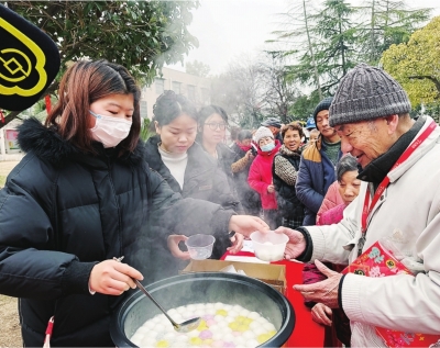 社区煮“七彩汤圆”为居民送甜蜜。