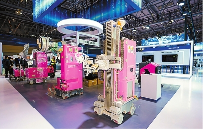 深圳博匠机器人有限公司展出的建筑涂装机器人。