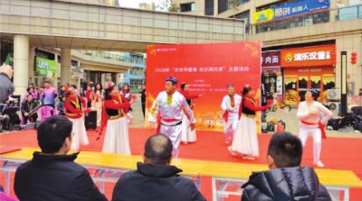 广场中央的小舞台前围满了观众,社区自编自演的文艺节目:独角戏《奴才难当》惟妙惟肖,黄梅戏《三说媒》选段韵味十足,新疆舞《今天是个好日子》热情奔放,赢得阵阵掌声。