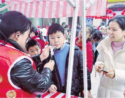 关东街道居民体验民俗活动。