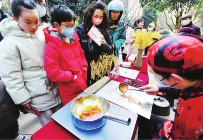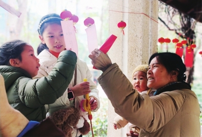 居民参与“猜灯谜”互动。