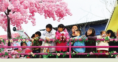 “烟火潮集”美食街二楼,居民在观看节目表演。