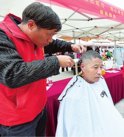 便民服务区升腾着最抚慰人心的“烟火气”。宋忠桥志愿服务队的理发摊位前,居民有序排队。刚理完发的刘大爷对着镜子照了又照,满意地说:“姜城师傅的手艺,很赞!”