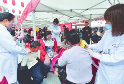 蔡甸区中医院的医护人员为居民刮痧诊疗。