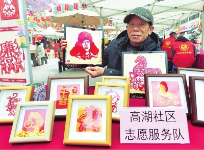 非遗传承人朱兵华的展台被围得水泄不通。栩栩如生的剪纸和雕刻作品让居民惊叹连连。“这都是手工刻的?太厉害了!”带着孩子的赵女士一边拍照一边对孩子说,“你看,这就是我们传统文化的魅力。”精巧的作品很快成了居民手机相册里的“明星”。
