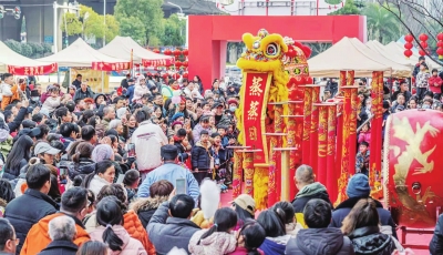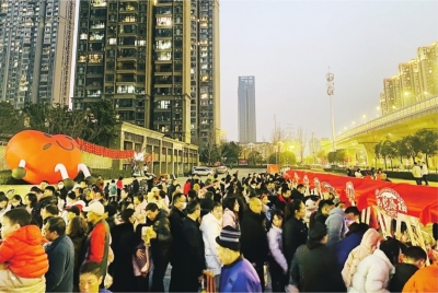 社区居民为舞狮表演“蒸蒸日上”叫好。