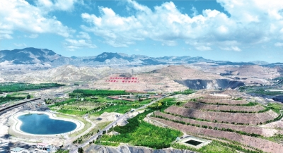 在宁夏石嘴山市大武口区石炭井,曾因过度开采而满目疮痍的矿山逐步恢复绿色“容颜”(2025年6月30日摄,无人机照片)。