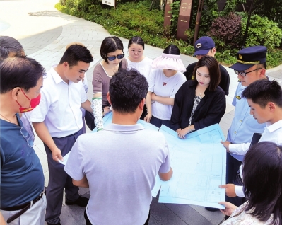 合心月谈暨多方代表现场商议电动车棚的建设地址。