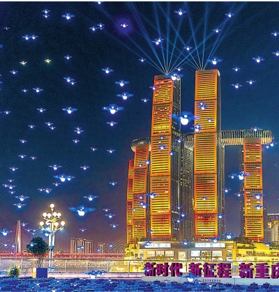 “魅力重庆”常态化无人机灯光秀表演。