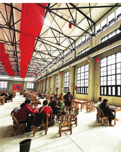 厂区里的老厂房依然保留完好,其中,部分厂房保留着红砖墙、坡屋顶等历史风貌特征。徐家棚老茶馆就由4号老厂房改造而成。