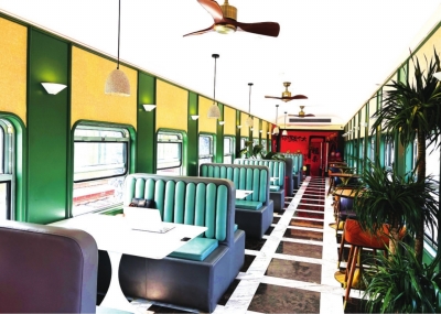 由绿皮火车车厢改造而成的武昌北·1917火车咖啡厅。