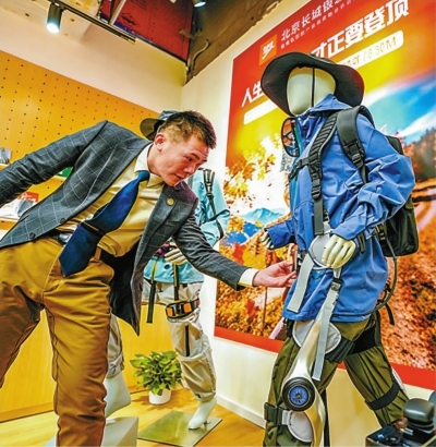 智能产品区人气最旺。记者看到,不少老人饶有兴致地停下脚步,和下棋机器人过上几招,与陪伴机器狗互动。两款外骨骼机器人设备前,有老人在工作人员的指导下体验科技辅助行走。