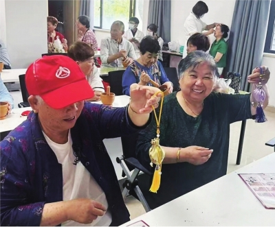 社区居民展示自己的作品。