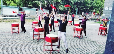 居民利用空地彩排威风锣鼓。