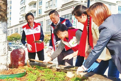 在名湖豪庭小区,大家挥锹铲土、扶苗浇水,为小区新植20株绿植。居民张立清带领团队踊跃参与,大家亲手认领绿植、播种希望,并挂上“向阳而生”等心语,让绿色与美好共同生长。志愿者们同步开展“清洁家园”行动,践行绿色文明理念。