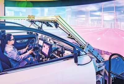 东风汽车研发总院工程师正在仿真实验室里进行测试。