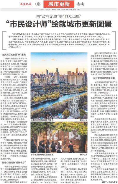 刘桂兰的喜悦,源于一场正在沈阳全面推进的城市更新行动。作为一座老工业城市,沈阳建成时间早、老旧小区多,如何让城市焕发新生机,同时留住烟火气与人文温度?2021年7月,沈阳市制定实施办法在城市建设中推出“市民设计师”制度,邀请普通市民、行业专家、社区工作者等共同参与老旧小区改造、背街小巷微更新和口袋公园建设,让城市更新从“政府定单”转向“群众点单”。