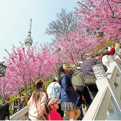 农历新年,沉寂18年的龟山电视塔部分重新开放,“亚洲桅杆”再度成为焦点。市民李盼大年初一登塔圆梦:“登塔俯瞰新年里的两江四岸,不虚此行。”此时,龟山上福建山樱花抢先绽放,拉开武汉浪漫春日序幕。全长约800米的樱花栈道上,400余株樱花次第开放,从2月持续至4月,绘就“樱遇江城”的长卷。“以前龟山是爬山、看江,现在是‘看花+看江’的绝佳机位。”摄影爱好者简先生拍摄的“樱花与电视塔同框”系列作品在社交媒体获赞超10万。