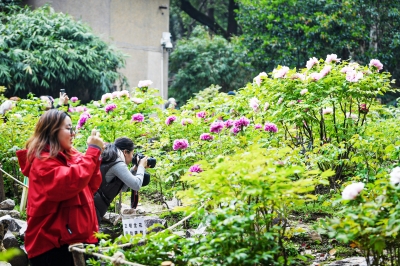 春风送暖,国色天香。4月1日,汉阳公园牡丹园内的牡丹花迎风绽放,整体开花率达三成,预计未来一周将迎来盛花期。
