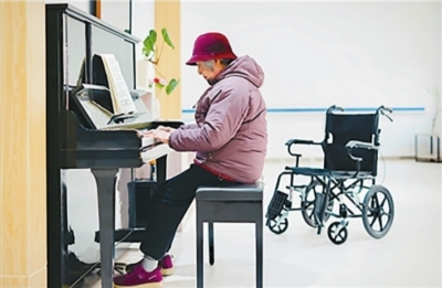 95岁的王奶奶戴着呢子帽坐在钢琴前,缓缓弹起《东方红》。“我年轻时还组织过200人的广场舞。”她曾参加过抗美援朝,战争结束后在杭州从事财务工作,直到70岁才退休。