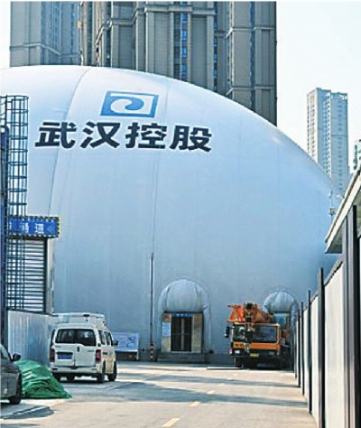 施工单位、武汉市水务建设工程有限公司安保负责人卢刘洋说,为此,施工团队想了很多办法,当从网上了解到,有外地城市开始使用基坑气膜,防止施工污染时,便迅速出动考察,对接相关企业,经建设方同意后,订制了这只巨大的“防尘罩”。