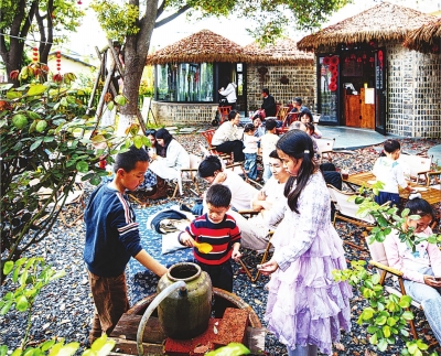“村里咖啡”周末接待大量亲子家庭游客。