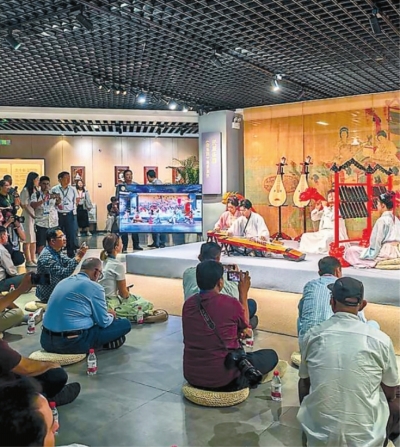 “我们依据古画《合乐图》,复刻出琵琶、箜篌等19件乐器,并由专业演奏人员进行情景式演绎。”这一展演的主创方之一、深圳市佳音王科技股份有限公司相关负责人介绍,这一“乐器复刻+非遗展演+音乐创作”的模式,正推动民族乐器从产品出口转向文化IP(知识产权)输出。