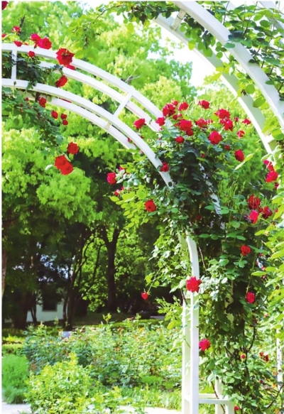 东湖落雁景区玫瑰花开。