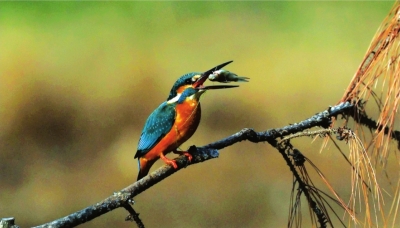 《翠鸟抓鱼落松枝》