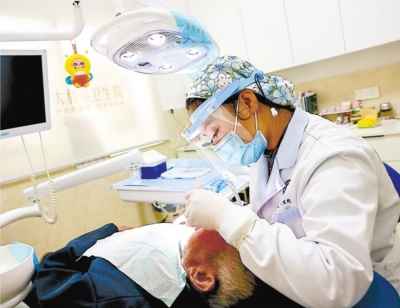 口腔科医生给患者治疗。