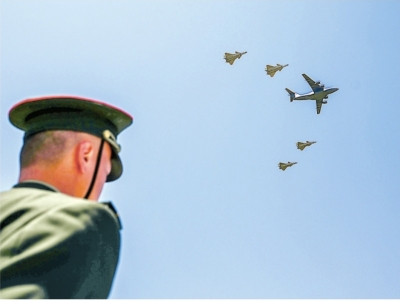 22日上午,中韩双方在韩国仁川国际机场举行志愿军烈士遗骸交接仪式。9时50分许,呼号为“荣归50”的运-20B起飞。进入中国领空后,呼号为“红鹰”的4架歼-20迎接护航,“双20”列阵长空致以崇高敬意。5机组成“箭”形编队列阵长空,以最高礼仪告慰先烈。