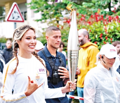 当地时间5日,巴黎奥运会火炬传递在法国西部大西洋卢瓦尔省继续进行,中国女子自由式滑雪运动员谷爱凌作为当天第11号火炬手参与传递,她也是本届奥运会火炬手中第一位来自中国的现役运动员。
