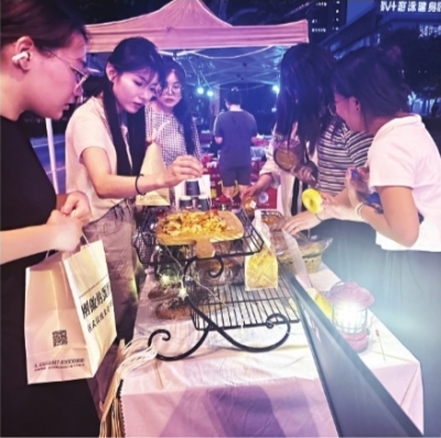 武汉晚报讯(记者王东方 通讯员詹鸥)夜幕降临,在硚口区凯德广场旁的夜市,一辆橙黄色面包车格外显眼。记者在现场看到,面包车前的小摊上摆放着羊角包、可颂、吐司等现烤面包,价格2元至15元不等。车后备厢进行了改装,配有移动电源和咖啡机,9.9元一杯的饮品成为面包的“黄金搭档”,圈粉无数。