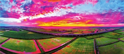 “莫道桑榆晚,为霞尚满天。”暮云成霞,是最为炽烈的一种云彩。这种火烧云,一般是被朝霞、晚霞渲染成金色、橙色、红色等暖色的云彩,越是空气通透的地区越容易出现具有悦目色彩的火烧云。