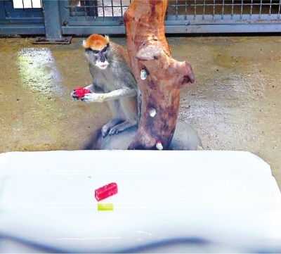 “除了‘外用’冰块享清凉,山魈则更爱‘内服’冰块解暑。”非洲区保育员董磊最喜欢看山魈舔冰块的画面了,“它舔到周身舒服了再爬到树上,晾一晾冰湿的毛发,身上的热气也烟消云散了。”